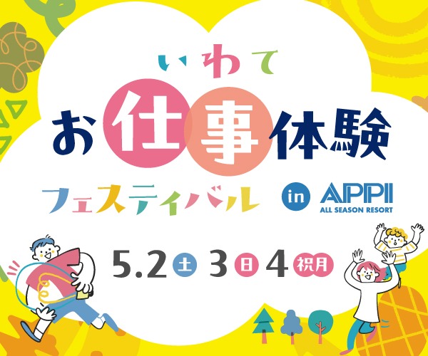 | イベント参加チケット | ●いわてお仕事体験フェスティバル in APPI 参加チケット…1名1,800円(お子様対象) ※開催日:2026年5月2日(土) ~ 5月4日(月祝) ●イベント内のアクティビティ等に利用可能なアクティビティクーポン…1枚500円 イベント当日にクーポンを販売いたします。(10枚セットでご購入いただくと1枚無料) ※各アクティビティは1回500円または500円単位でご利用可能です。 ※ゴンドラ遊覧にはご利用いただけません。 |