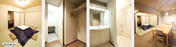 เรามีห้องสไตล์ญี่ปุ่น และตะวันออก โดยมี “โคทัตสึ” (โต๊ะที่คลุมด้วยผ้าห่มและมีเครื่องทำความร้อนด้านใน) ในสไตล์ญี่ปุ่นตอนเหนือแท้ ๆ