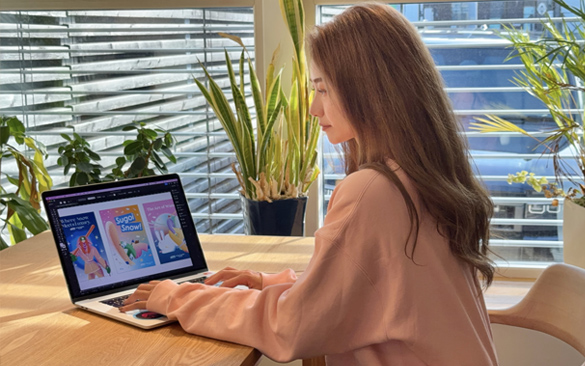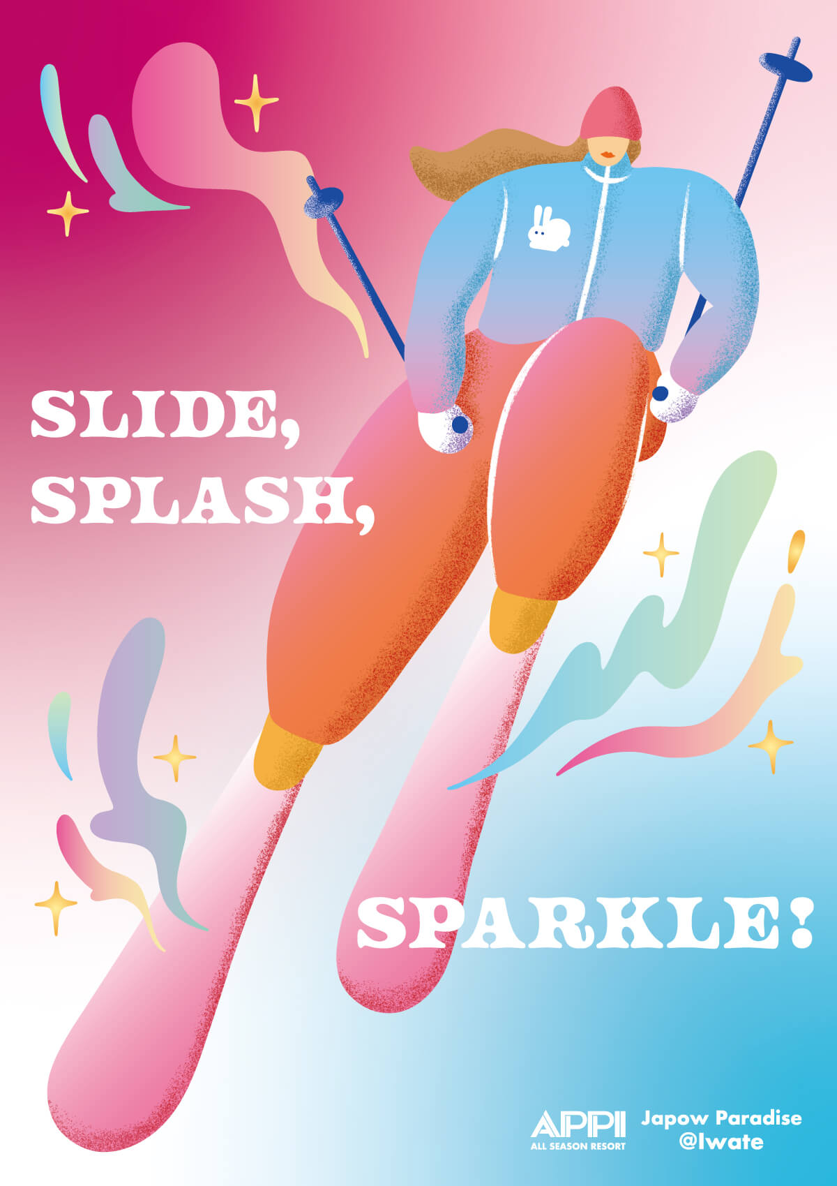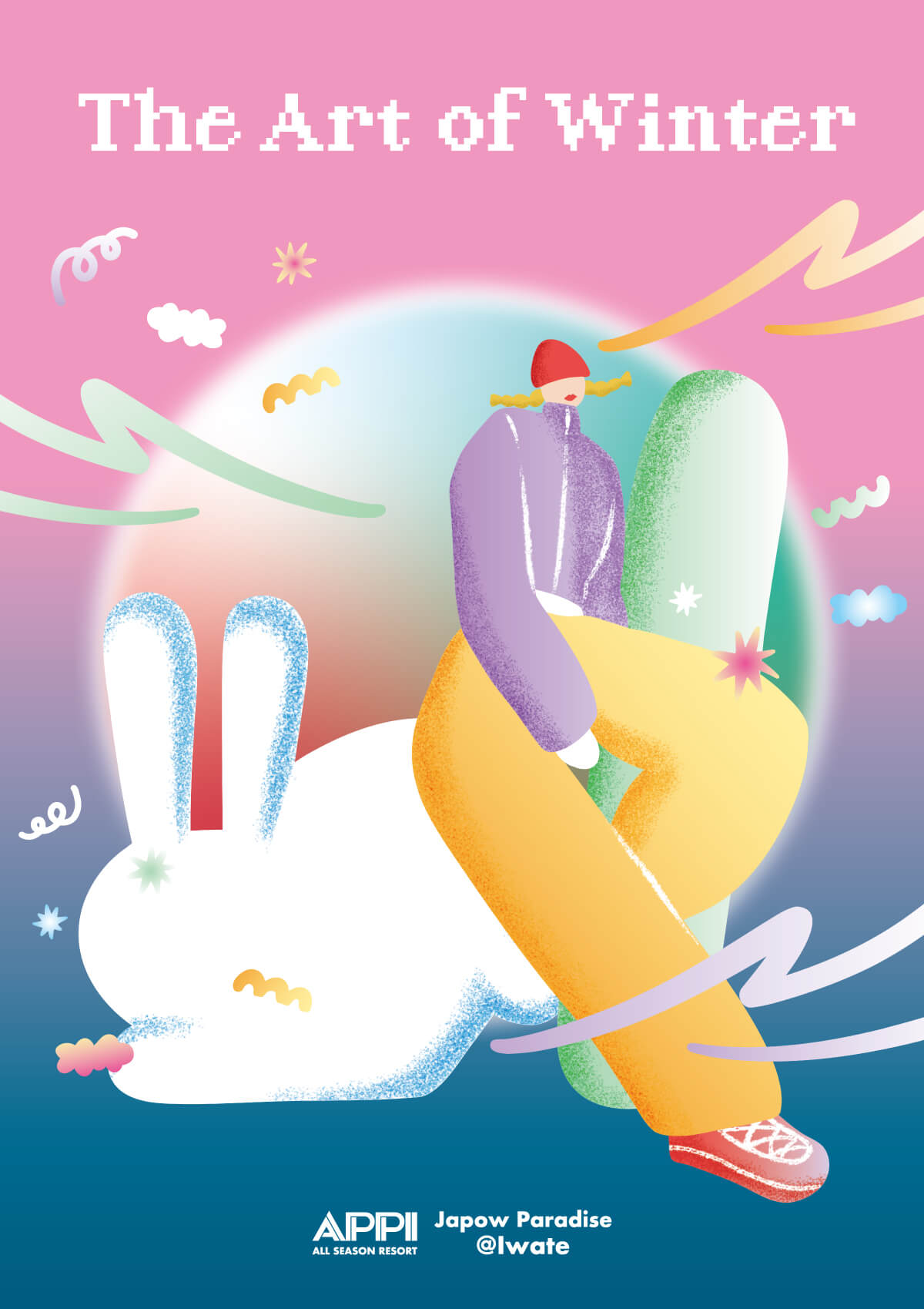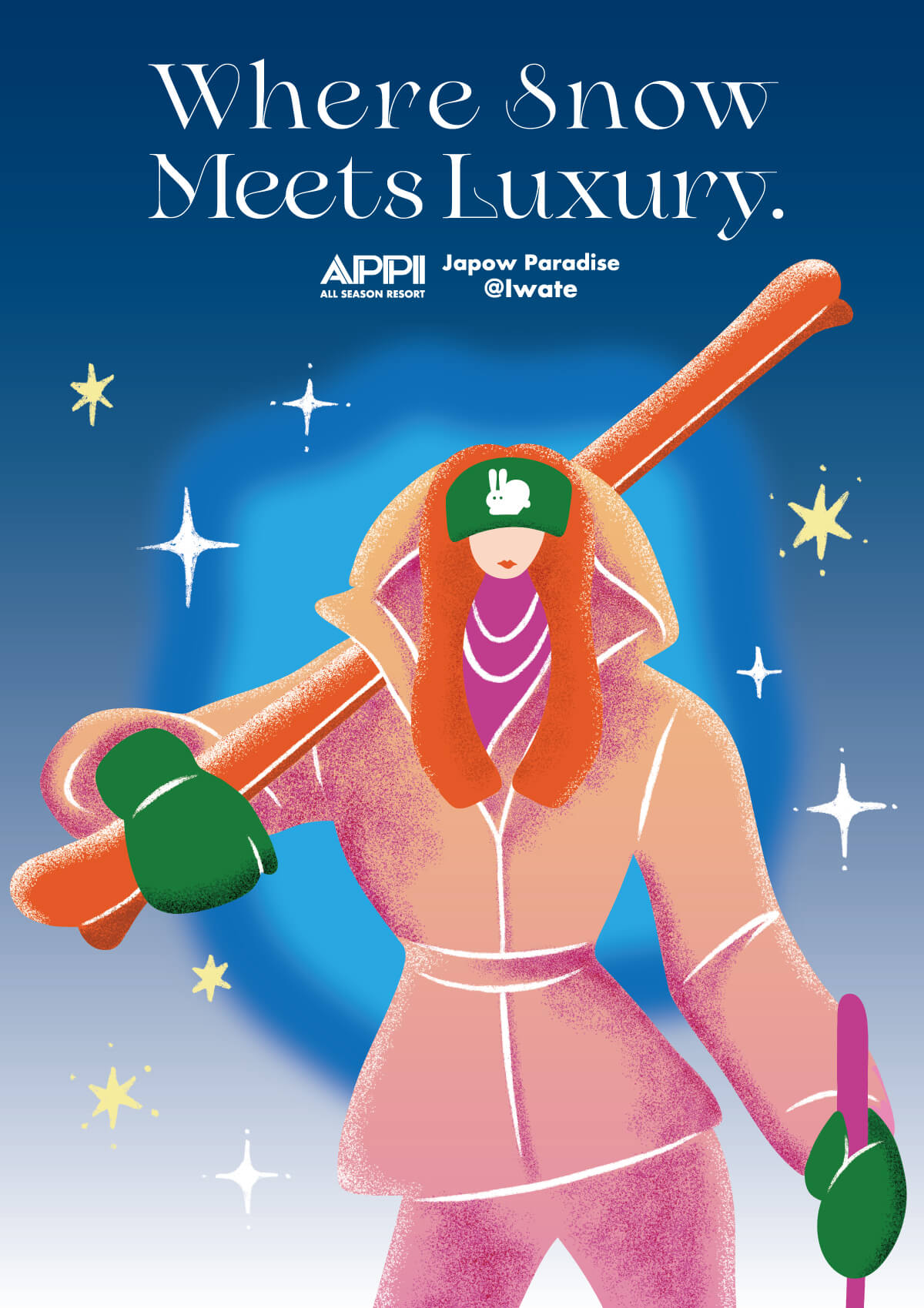 初めて皆川統括や安比の社員の方々とミーティングをした時に、「他のスキー場がやっていないこと、180度違う世界観で魅せたい」というお話をいただきました。制作に着手した時は迷いが全くなく、アイデアがすぐに湧いてきました。安比のコンテンツチームの皆さんにデザインを提案して、すぐに方向性が決まったことが嬉しかったです。デザインに込めた想いは3つあります。