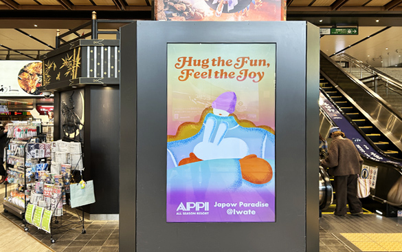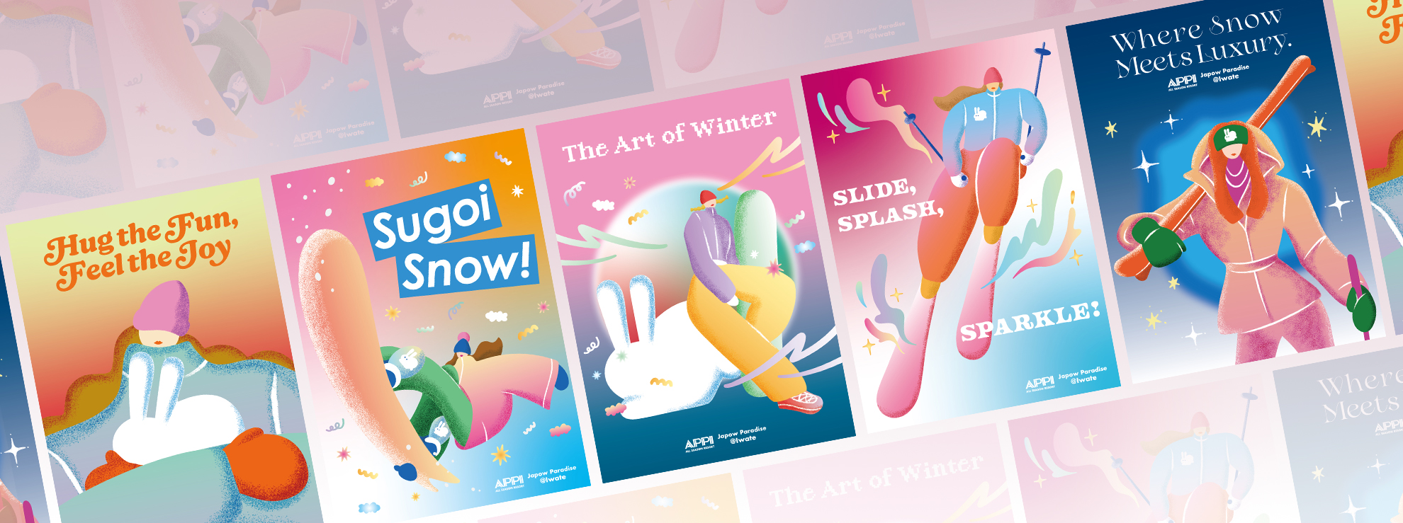 私たちは、見るだけでなく、体験でも感じられる楽しいクリエイティブを創ったと自負しています。広告やグッズ、スタンプラリーの企画連動など、外側のデザインだけでなく、どうすればキービジュアルを使ってお客様のテンションを上げられるのか?楽しんでくださるのか?という中身のところまで、コンテンツデザインチームの方々の協力も得て、たくさん考えました。安比はスノーボードやスキーが最高であることはもちろん、滞在するだけでも本当に素敵な場所です。ぜひ安比にお越しいただき、安比の自然や雪の美しさ、ショッピング、グルメ、そして様々なコンテンツと一緒に、私たちの企画やデザインを楽しんでもらえたらとても嬉しいです。