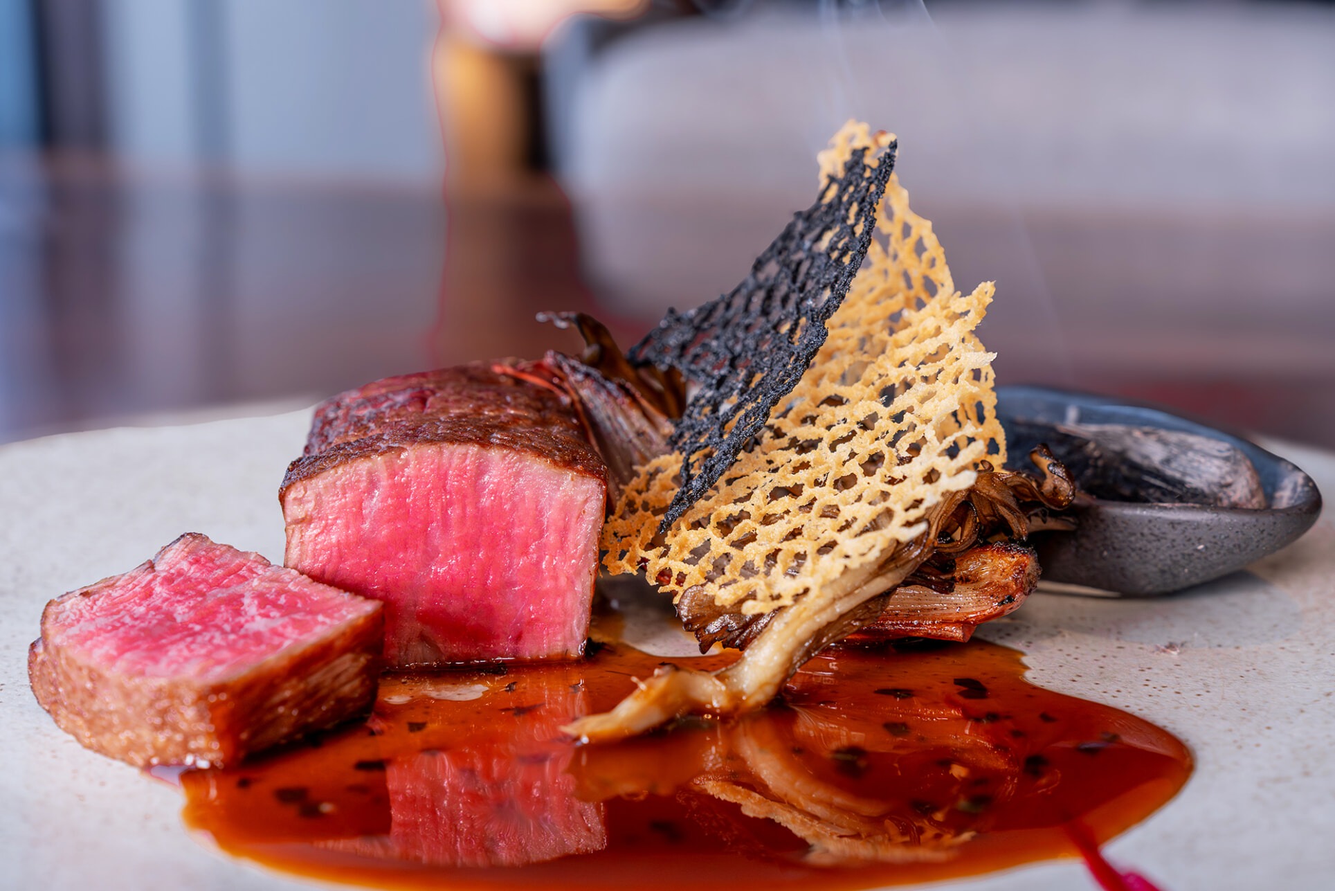 主菜明星:炭烤岩手牛肉片。