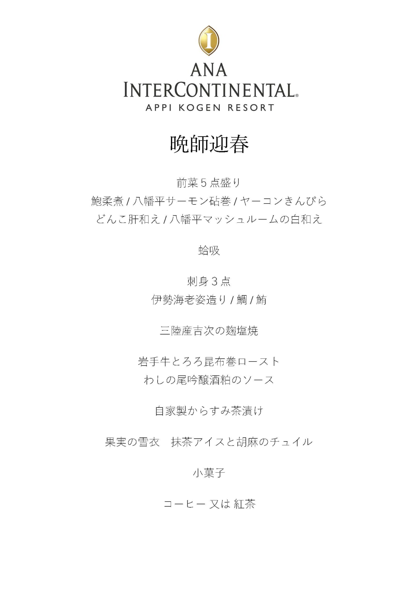 安比高原全日空洲際度假酒店 年末年初特別晚餐